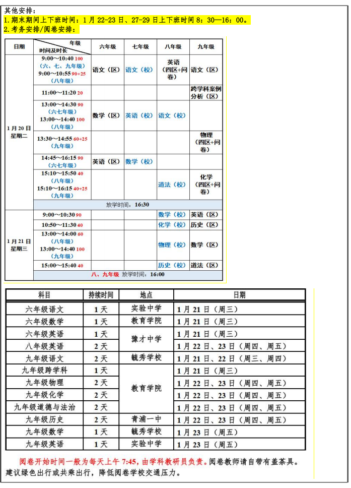 2025学年第一学期期末工作安排