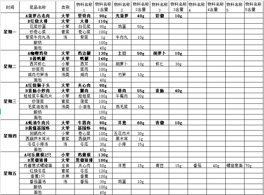 2024年第二学期第一周菜谱公示